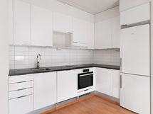 - Jääkaappi/pakastin (AEG, valkoinen), erillisuuni- ja taso (AEG, induktio), astianpesukone (AEG, integroitu), lemans -kulmamekanismi