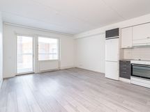 Tämä 3. kerroksen yksiö tarjoaa toimivan ja selkeän tilaratkaisun helppoon arkeen. Keittiö ja oleskelualue sijoittuvat samaan avoimeen tilaan, ja suuret ikkunat tuovat huoneistoon runsaasti päivänvaloa. Tilava kylpyhuone vastaa hyvin arjen tarpeisiin, ja lasitettu parveke lisää asumismukavuutta.