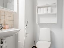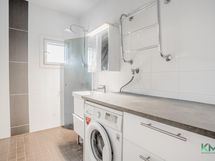 - Kylpyhuone, suihku- ja suihkuseinä, peilikaappi, allas-ja allaskaappi, ikkuna, kiinteät valaisimet, pesukoneliitäntä, rättipatteri, kaapistot ja työtaso. Seinät ja lattia laattaa. Erillinen wc: istuin uusittu helmikuussa 2024, peilikaappi, allas- ja allaskaappi, kiinteät valaisimet. Lattia muovimattoa ja seinät maalattu.