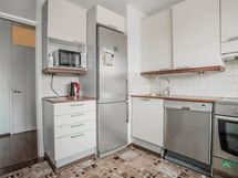 - Jääkaappi/pakastin, keraaminen liesi, liesituuletin, astianpesukone, kiinteät valaisimet, kaapistot, sälekaihtimet