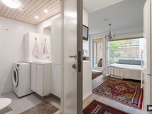 Avokeittiö tarjoaa oleskelutilan nurkassa kompaktin, mutta erinomaisesti toimivan ruoanlaittopisteen, joka on varusteltu kaikilla moderneilla mukavuuksilla. Eteiskäytävän varrelta oleskelutilaan jatkuva kaapisto tarjoaa mukavasti säilytystilaa niin vaatteille, kuin muillekin tarpeille. Kylpyhuone on nykystandardin mukaisesti esteetön ja erittäin avara. Kokonaisuuden kruunaa suuri terassi, jonka lasitusten suojissa viihtyy lähes vuoden ympäri ja kesäisin käytössäsi on vielä ihana piha kukkivine puineen.
