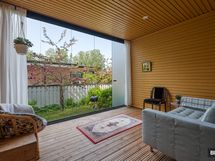 Terassin voi yhdistää omaan pihaan avaamalle terassilasit.