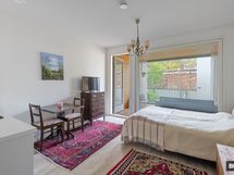 Lasitetulla terassilla varustettu yksiö luhtitalossa Rajakylässä omalla tontillaan