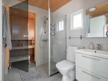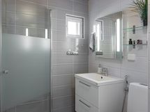 - Varustus: suihkuseinä, pesukoneliitäntä, lattialämmitys, wc-istuin, suihku, peili, kylpyhuonekaapisto. Varustus: lattialämmitys, lattiakaivo, suihku, suihkuseinä, bidee-suihku.