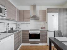 - Liesi: erillisuuni, liesitaso. Kylmäsäilytys: jääkaappi/pakastin. Varustus: liesituuletin, astianpesukone.