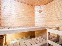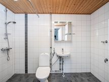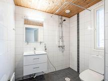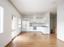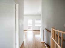 Rivitalohuoneisto, II-taso. Laminaattilattiat, vesikertoinen lattialämmitys. Kosteat tilat laatoitettu.