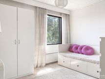 - Muuta kauppaan kuuluvaa: Sälekaihtimet ja rullaverhot (niissä ikkunoissa kuin esiteltäessä). Valkoinen makuuhuoneen kaapisto, varaston säilytysratkaisut, takkahuoneen liukuovikaapistot, vaatehuoneen vaatetanko, ilmalämpöpumppu ja markiisi.