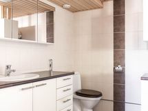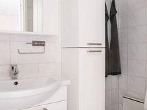 - Pesutilojen kuvaus: Kylpyhuoneessa on lattialämmitys (sähköinen) kaapistot, allaskaapisto, peilikaapisto, pesukoneliitäntä, suihkuseinät, wc-istuin ja suihku.