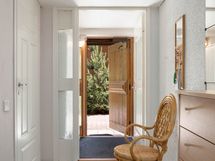 Eteisen viereisessä olevassa varastossa on lattiakaivo ja hana.