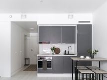 The apartment has plenty of natural light and an efficient floor plan ensures comfortable living. The first-floor home of the loft building offers a peaceful view of the courtyard. The apartment has, among other things, its own kitchenette, bathroom and small balcony.