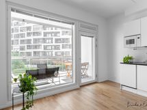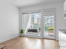 Tämän asunnon paras puoli on valo, joka tulvii sisään isoista ikkunoista! Asunnossa on sen lisäksi korkea huonekorkeus ja ihana lattialämmitys - ei siis ole pattereita hankaloittamassa sisustamista. Asumisen viihtyisyyttä lisää myös iso, asunnon levyinen parveke, joka on kuin yksi huone lisää.