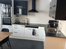 - Moderni, tyylikäs ja nykyaikainen keittiö jonne mahtuu iso ruokapöytä. Varustus : jääkaappipakastin, astianpesukone, Gorenjen induktioliesi, mikroaaltouuni ja kiertoilmauuni. Savon liesituuletin (huippuimuri), kaapistot. Seinät: Maali/lasi/tapetti. Lattia : laatta.