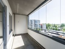 5./7. kerros, lasitettu parveke Martinlaaksonpolulle päin.