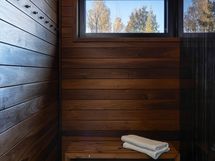 - Kuvaus: Upea sauna, lauteet ja katto Amerikan tulipuusta. Harvian aina valmis kiuas