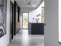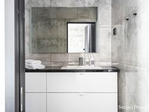 kiinteät valaisimet. Pukuhuoneessa upeat isot seinälaatat (120x240 Caisla). Erillisen WC:n kuvaus: Kaikissa seinä-Wc:t (IDO + seinäasennuselementit Geberit). Varustus: lattialämmitys, valumarmoriallas,