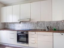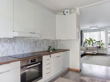 - Keraaminen liesi, erillisuuni- ja taso, jääkaappi/pakastin, astianpesukone, liesituuletin filtterillä, kiinteät valaisimet