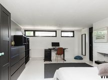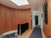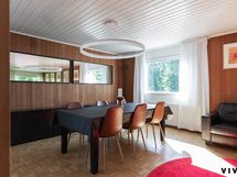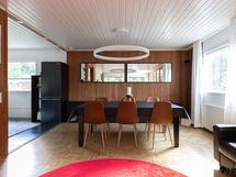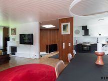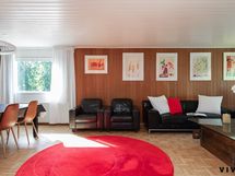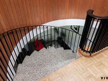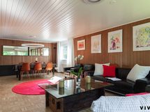 Now on offer - a spacious and elegant semi-detached home combining the best features of 1970s architecture with modern-day comfort. This 182 m² residence offers generous living space for a larger family or anyone in need of space for a home office or hobbies. The layout is practical and divided over two floors: a solid concrete and brick lower level and a wooden upper floor. The entrance hall is broad and welcoming, with a striking spiral staircase leading to the living areas upstairs.