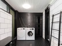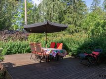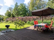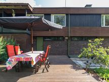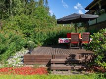 The private backyard opens toward the evening sun and features a spacious terrace and integrated woodshed while a heated 28 m² garage doubles as both as am all-year storage area and workshop. The well-managed two-unit housing company allows residents to have an active say in matters related to the property and shared maintenance.