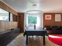 Yläkerrassa on kolme makuuhuonetta, avara olohuone suurine ikkunoineen, ruokailutila ja keittiö, joissa on runsaasti luonnonvaloa ja käytännölliset ratkaisut. Oregoninmännyllä paneloidut pinnat tuovat kotiin arvoasunnon tunnelmaa ja aikakaudelleen tunnusomaista ilmettä.