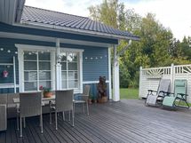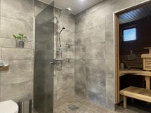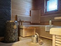 Kylpyhuone ja sauna ovat hiljattain täysin remontoitu, ja saunaosastolta on suora kulku suurelle terassille, jossa voi rentoutua saunan jälkeen tai viettää kesäiltoja grillaten perheen ja ystävien kanssa.