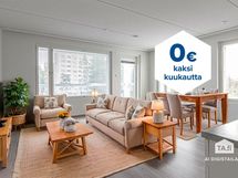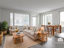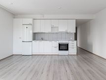 Länsimäen alueelta hyvien kulkuyhteyksien varrelta. Trendikkäässä avokeittiössä on reilusti työskentely- ja säilytystilaa, ja yhdessä olohuoneen kanssa muodostaa se avaran yhteisen tilan, josta on myös kulku asunnon levyiselle lasitetulle parvekkeelle johon paistaa nätisti ilta-aurinko. Parvekkeella on valmiina tumma laudoitus. Tilavaan makuuhuoneeseen mahtuu isompikin sänky sekä työpiste. Tilavassa kylpyhuoneessa on pesukonevaraus.