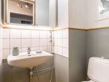 - Kylpyhuone, suihku, peilikaappi (2 kpl), pesukoneliitäntä, kiinteät valaisimet, erillinen wc, sähkösauna