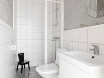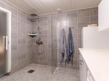 - yläkerran khp: peili, allaskaappi, suihkuseinä, wc-istuin, lattialämmitys. Alakerran kph: suihku, sauna, erillinen wc, kaapistot