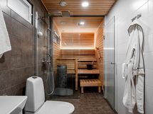 - Kaukolämpö, asunnossa vesikiertoinen lattialämmitys.