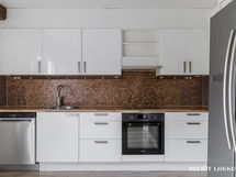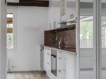- Varustus: leveä jääkaappi/pakastin, induktioliesi, erillisuuni, liesituuletin, astianpesukone, kiinteät valaisimet