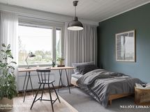 - 4h, k, kph, s, eril.wc, aula, et, var., piha (yhtiöjärjestyksessä 4h+k+s)