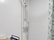 - Pesutilojen kuvaus: Saunan yhteydessä on vaaleasävyinen pesuhuone, jonka varustuksiin kuuluu suihku. Lattia ja seinät ovat laatoitetut. Erillisen WC:n kuvaus: Huoneistossa on kaksi erillistä WC:tä. Molempien varustuksiin kuuluu wc-istuin, käsisuihku, lavuaari ja peilikaappi. Toisessa erillis-wc:ssä on lisäksi allaskaapit. Lattiat ovat laatoitetut ja seinät maalatut ja altaan tausta laatoitettu.