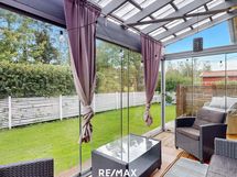- Lasitettu terassi, jonka pinta-ala on noin 2,2 x 4,6 metriä (n. 10 m2).