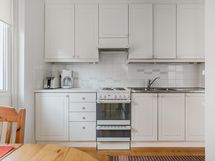 - Jääkaappipakastin, sähköliesi, liesituuletin, kaapistot, kiinteät valaisimet.