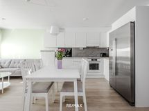 - Keittiön varusteet: Jääkaappipakastin, liesi, astianpesukone, uuni ja liesituuletin. Liesi: Induktioliesi.