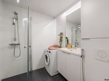 - Pesutilojen varusteet: WC-istuin, suihku, suihkuseinä, peilikaappi, pesuallas, allaskaappi ja bidee-suihku.