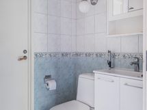 - Kylpyhuone, erillinen wc, suihku, peilikaappi erillinen wc, kaapit erillinen wc, allaskaappi erillinen wc, pesukoneliitäntä kph, kiinteät valaisimet.