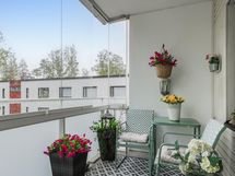 - Lasitettu noin eteläparveke, jonne kulku on päämakuuhuoneesta.