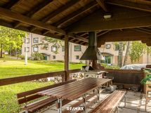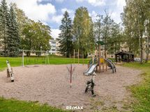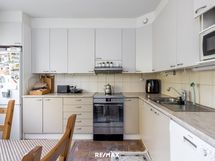 - Keittiön varusteet: Jääkaappipakastin, uuni, liesi, liesituuletin ja astianpesukone. Liesi: Keraaminen liesi. Työtason materiaali: Laminaatti.