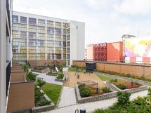 - Oleskelutiloista ja parvekkeelta näkymät taloyhtiön rauhalliselle ja vehreälle sisäpihalle.