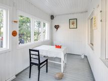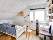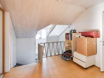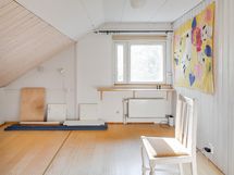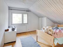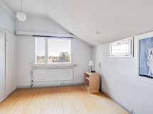 - Yläkerrassa on kylmä ullakko ja noin 5 metriä pitkä lapetila. Vanha eteinen on parkettilattialla ja maalatuilla seinillä. Uusi eteinen on osa laajennusta (2002), lattia laattaa, seinät maalia, kylmä tila, vesikiertoinen lattialämmitys ei käytössä. Lasikuisti on kylmä kuisti, lattia puuta, ja sen alla sijaitsee öljysäiliö.