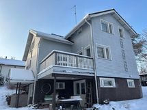 kodinhoitohuone, kylpyhuone ja sauna). Jätekatos ja pihaterassi 2023. Varastorakennuksen julkisivu uusittu