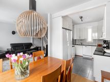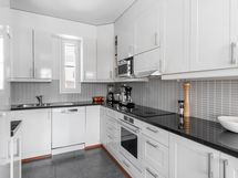 - Keittiön varusteet: Liesi, jääkaappi, erillinen pakastin, liesituuletin, astianpesukone ja erillisuuni. Liesi: Induktioliesi ja erillisuuni. Työtason materiaali: Kivi. Keittiössa lattialämmitys.