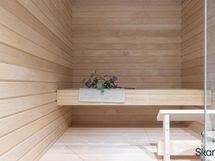 - Kiuas: Sähkökiuas ja kokolasiseinä. Saunan seinät ja lauteet ovat tervaleppää. Harvian kiuas digitaalisella ohjauksella.