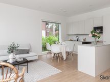 - Pinta-alan peruste: Ei tarkistusmitattu. Pinta-ala voi siis olla edellä mainittua pienempi tai suurempi. Rakennuslupapiirrustusten mukainen huoneistoala 81 m2 (asuinpinta-alaan on laskettu mukaan kolme makuuhuonetta, avokeittiö, olohuone, wc-tila, kodinhoitohuone, kylpyhuone, sauna sekä lämmin varasto/tekn tila, johon on käynti ulkoa sekä yhdestä makuuhuoneesta ).