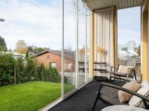 Pihalta löytyy nurmialueen lisäksi ulkoterassi sekä suuri lasitettu terassi, jossa on mukava viettää syksyn pimeneviä iltoja. Talon yhteydessä sijaitseva lämmin varasto tarjoaa käytännöllistä säilytystilaa. Oma autopaikka kodin edustalla, ja siihen mahdollisuus asentaa sähköautonlatausasema.