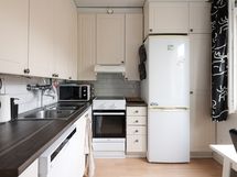 - Jääkaappi/pakastin, induktioliesi uusittu 2025, uuni, astianpesukone 2018, kaapistot. Lattia: Laminaatti. Seinät: Laatta, maalattu katot ja seinät 2018