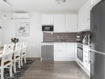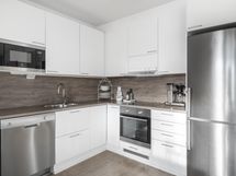 - Jääkaappipakastin Rosteri, Electrolux, erillisuuni Rosteri, Electrolux, liesitaso Electrolux, induktio, liesituuletin, mikroaaltouuni Rosteri, Electrolux, integroitu, astianpesukone Rosteri, Electrolux, kaapistot, kiinteät valaisimet.