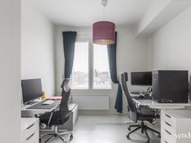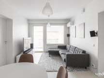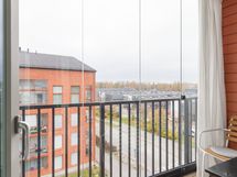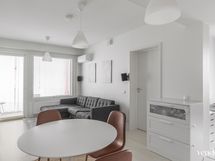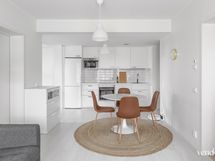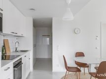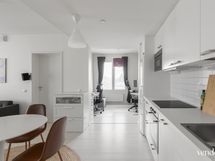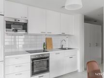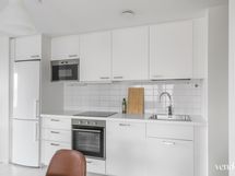 - Keittiön varusteet: Jääkaappipakastin, uuni, mikroaaltouuni, liesituuletin, liesi ja astianpesukone. Liesi: Induktioliesi. Työtason materiaali: Laminaatti.