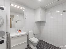- Pesutilojen varusteet: WC-istuin, suihku, lattialämmitys, pesukoneliitäntä, peilikaappi, peili, pesuallas, allaskaappi ja bidee-suihku.