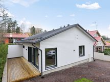 Muuttovalmis uusi paritalokolmio idyllisellä Hiekkaharjun pientaloalueella. Tämä uusi yksitasoinen paritalokoti on täydellinen valinta sinulle, joka arvostat avaruutta ja valoa yhdessä tasossa. Kodin tilava keittiö-olohuoneyhdistelmä antaa loistavat puitteet arjen yhdessäoloon. L-muotoinen keittiö tarjoaa runsaasti työskentely- ja kaappitilaa ja isot ikkunat kahteen ilmansuuntaan siivilöivät luonnonvalon sisälle. Näkymät ovat suojaisalle terassille, jota reunustaa kaunis kivimuuri. Terassilla pääset rauhassa nauttimaan ensi kesästä vaikkapa grillaillen perheen tai ystävien kanssa. Asunnossa on kaksi hyvän kokoista makuuhuonetta, joissa kummassakin liukuovikaapistot. Tilava sauna, kylpy- ja kodinhoitohuone muodostavat täydellisen kokonaisuuden, joten arjen askareet sujuvat vaivattomasti. Erillinen wc lisää mukavuutta ja käytännöllisyyttä. Säilytystilaa on runsaasti. Tilavaja lämmin tekninen tila/varasto toimii oivana lisätilana. Lämmitysmuotona PILP miellyttävällä vesikiertoisella lattialämmityksellä. Hiekkaharjun urheilupuiston loistavat harrastusmahdollisuudet, Tikkurilan monipuoliset palvelut, lähellä sijaitsevat koulut ja päiväkodit sekä hyvät liikenneyhteydet helpottavat arjen sujumista. Hallinnanjakosopimus ja oma tontti. Älä jää paitsi tästä upeasta mahdollisuudesta! Tule ja ihastu – uusi koti odottaa sinua! Ota yhteyttä ja varaa oma yksityisnäyttösi.